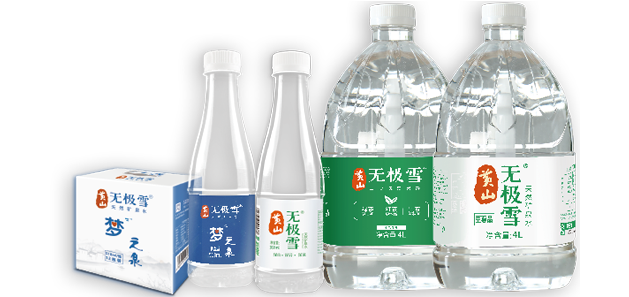 水質(zhì):黃山無(wú)極雪水源為地下裂隙流動(dòng)活水,富含鍶、偏硅酸、鈣鎂離子、碳酸氫根、硫酸根,呈天然弱堿性和小分子團(tuán)的特征,重金屬和污染物等限量指標(biāo)遠(yuǎn)低于礦泉水成品的限量值,并有低鉀鈉、低氯離子、低溴酸鹽、色度和渾濁度堪比凈水、菌落總數(shù)極低的特性,為稀有的利于人體健康的優(yōu)質(zhì)礦泉水水源。
